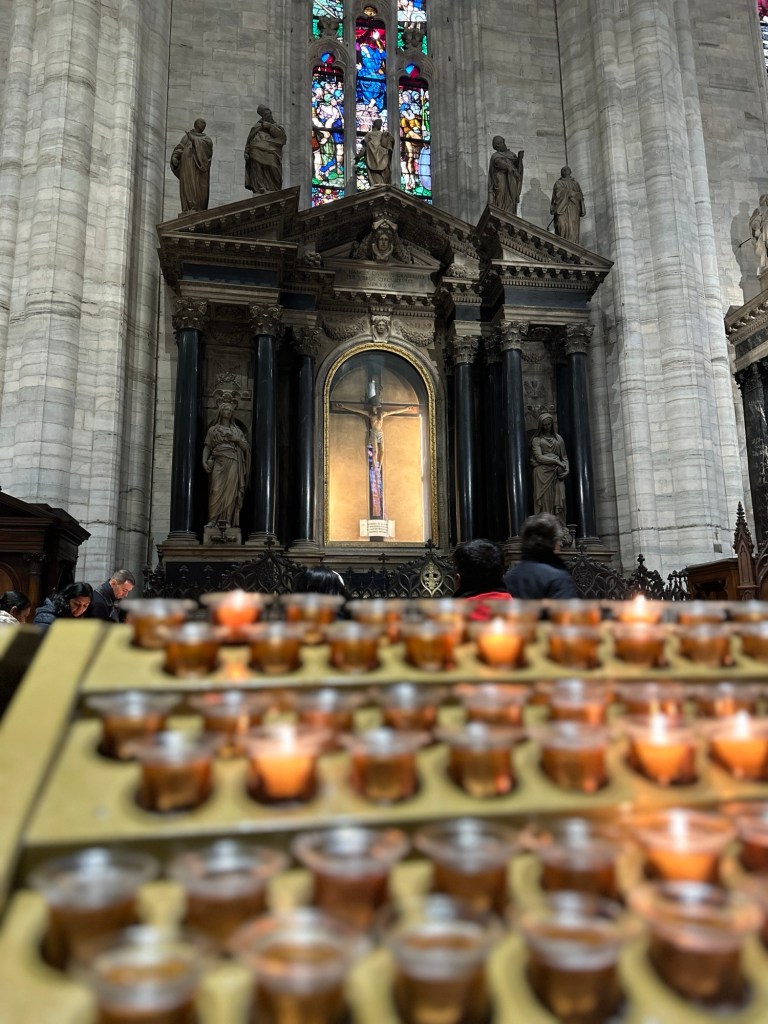 Do not skip out on admiring the beauty from the interiors. Scan the ceiling to view stained glass windows and intricate craftsmanship that went into the sculptures that adorn the cathedral. We were blessed with the opportunity to light a candle to memorialize the departed, witness the choir’s harmony echo through the cathedral and morning mass.