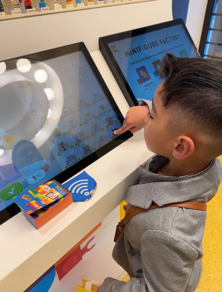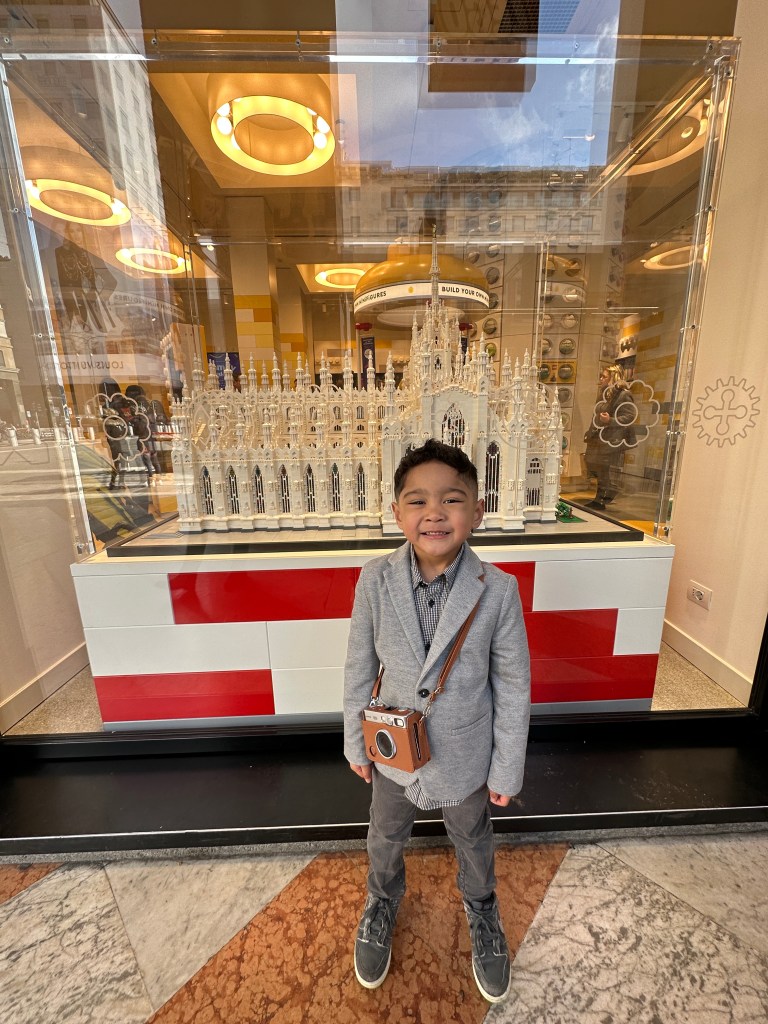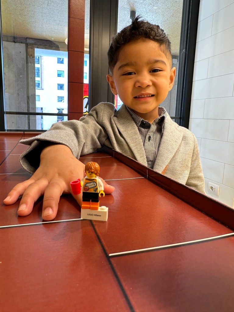 Our favorite part about the experience – is the custom Lego block that is labeled with our Muses destination! You have the option to put your name or text on one side of the block then the opposite side it is formatted with “Lego [location].” In this case, it said Lego Milano. The little person is fully customizable with limited edition skins and designs that are specific to the city we are visiting. For €11.45, Its always worth the little smile and a new core memory engaged. We look forward to traveling to more countries and collecting these timeless Lego little people.